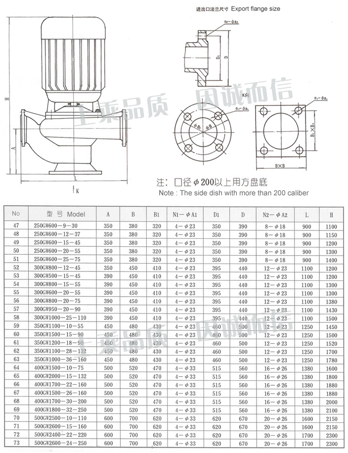 GW型系列無堵塞單級管道排污泵系進出口在同一水平線上,且規(guī)格相同,立式結構,占地面積小,電機與泵同軸,設有安裝底盤,便于安裝穩(wěn)固,葉輪采用單(雙)流道,具有良好的通過性能。