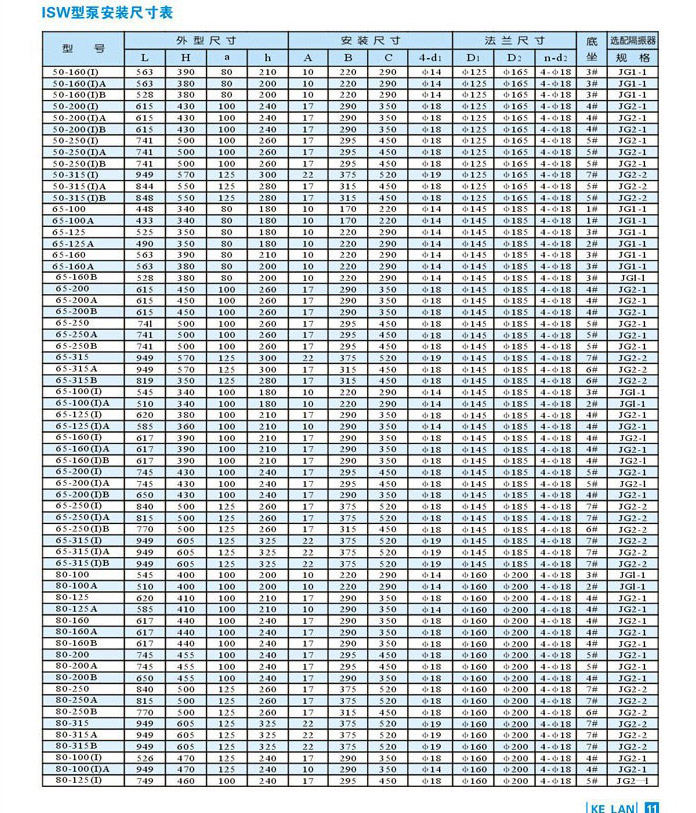 | ISW臥式清水泵 | |||||||||