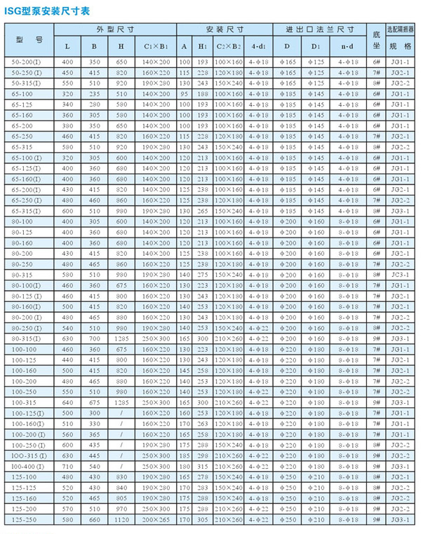 | ISG型系列單級(jí)單吸管道離心泵 | |||||||||