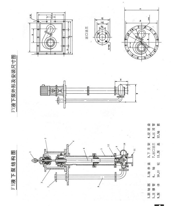 液下泵的形式為長軸立式離心泵,其與介質(zhì)接觸部分采用鑄鋼或者不銹鋼制造,根據(jù)客戶要求液下深度由0.5M-6M不等,工作部分淹沒與液體中,無需灌液即能輸送,由于泵運轉(zhuǎn)產(chǎn)生的軸向力及徑向力分別由液上部分的滾動軸承和液下的滑動軸承支撐。運行平穩(wěn)。