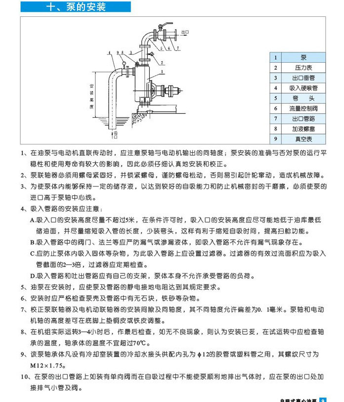管路中不需要底閥,工作前只需要保證泵體內(nèi)儲有定量引油即可,過流材質(zhì):鑄鐵、不銹鋼,流量范圍:3.2-600m3/h 揚程范圍:12-80m